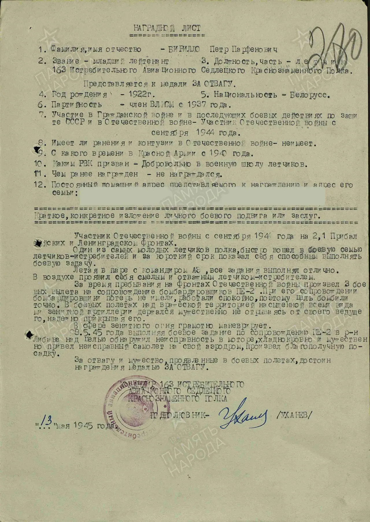 Пётр Борилло/Бирилло (22.01.1922 г. р.) 1942-1943 г. СВАШП-БВАШП