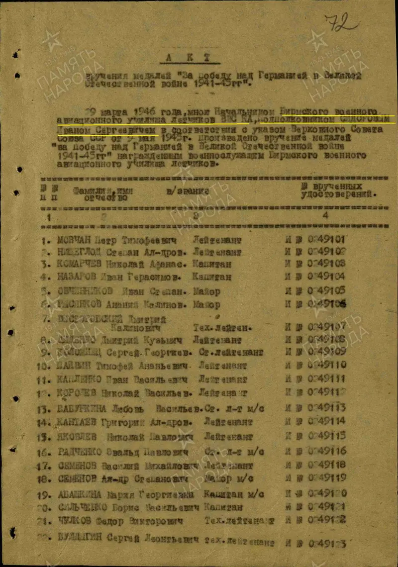Я в школе второй год, у меня восемь человек курсантов, у некоторых звание повыше, чем моё. И вот 1942 год, 23-е февраля, День Красной Армии.