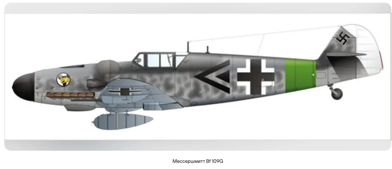 Что же получается? Все истребители во время войны были одноместные, не было двухместных. Пытались немцы сделать, пытались мы. А (Вилли) Мессершмитт сделал для своего сына (рассказчик явно заблуждается, детей у Вилли Мессершмита не было. Возможно, речь о племяннике или об одном из сыновей баронессы Лилли фон Мишель-Раулино, бывшей любовницей Мессершмита, с ней Вилли заключил брак только после войны — прим. В_О) такой двухместный. Сидели спина к спине, сзади у него стрелок с крупнокалиберным пулемётом. Наши, когда сбивают, звёздами отмечают, сколько сбил, а у него 15 этих фашистских знаков — 15 самолётов наших сбил.